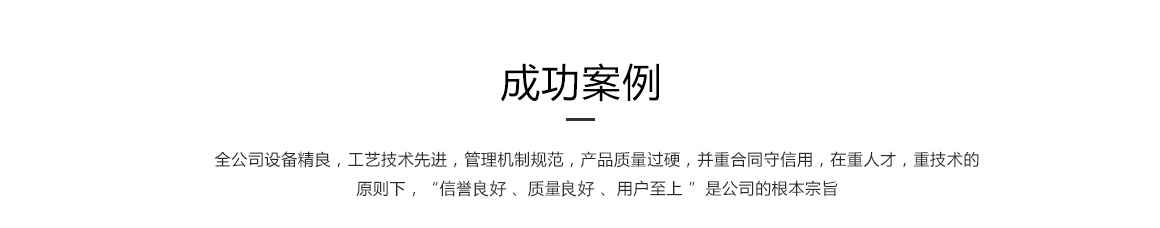全公司設備精良,管理機制規(guī)范,產(chǎn)品質(zhì)量過硬,并重合同守信用,在重人才,重技術的原則下,“信譽好 、質(zhì)量標準 、用戶至上 ”是公司的根本宗旨。公司上下,團結(jié)一致,把不斷完善并持續(xù)改進質(zhì)量管理體系作為公司永恒的追求。